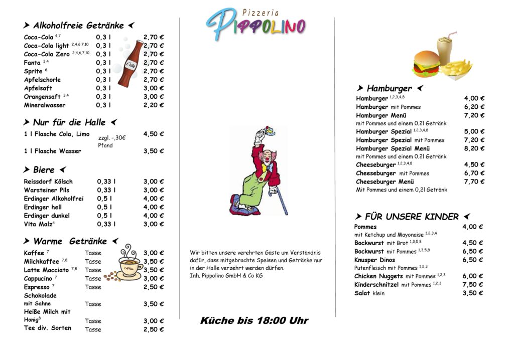 Spaghetti, Hamburger, Salate und vieles mehr für den großen und den kleinen Hunger. Pippolino bietet ein vielfältiges Speisen- und Getränkeangebot. Schaut selbst, was es alles gibt...